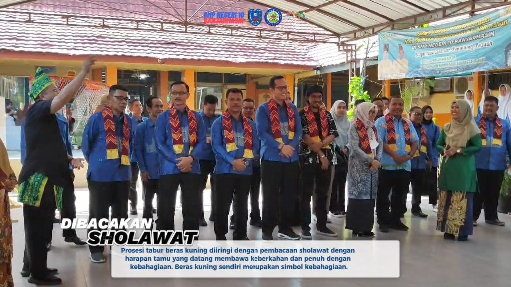 Sebelum para tamu berlanjut melangkahkan kaki menuju Aula SMP Negeri 10 Banjarmasin, prosesi tabur beras kuning sendiri diiringi dengan pembacaan sholawat menjadi harapan agar tamu yang datang membawa keberkahan dan penuh dengan kebahagiaan. Karena beras kuning sendiri merupakan simbol kebahagiaan.