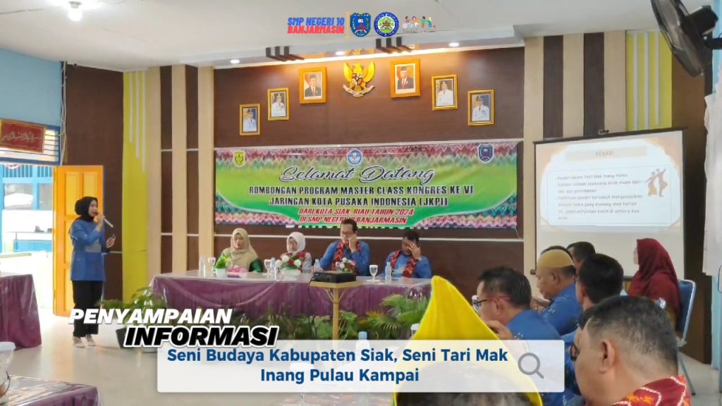 Kegiatan Kongres Ke VI Jaringan Kota Pusaka Indonesia (JKPI) merupakan tempat berkumpulnya para pegiat dan pecinta warisan budaya Indonesia. Dalam kunjungannya tamu Rombongan Program Master Class Kongres Ke VI dari Siak berkesempatan menyampaikan informasi tentang Seni Budaya khususnya Tari Mak Inang Pulau Kampai.