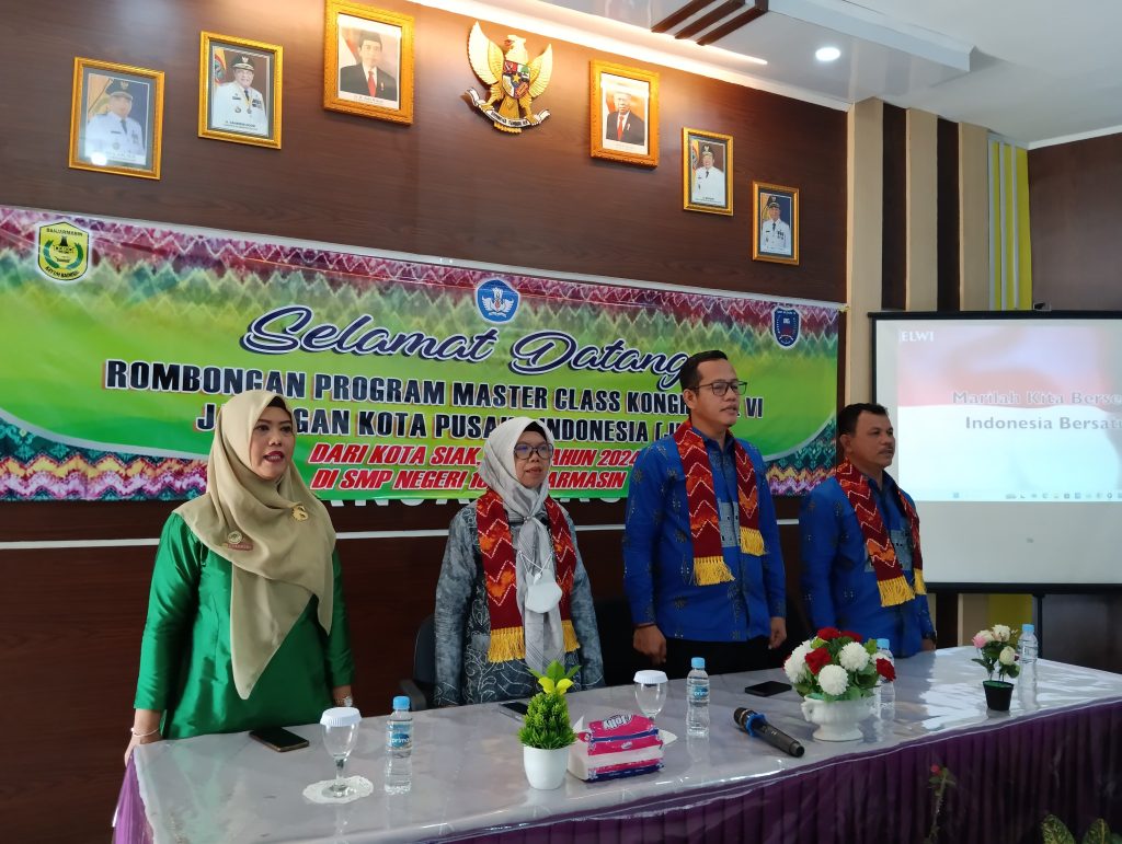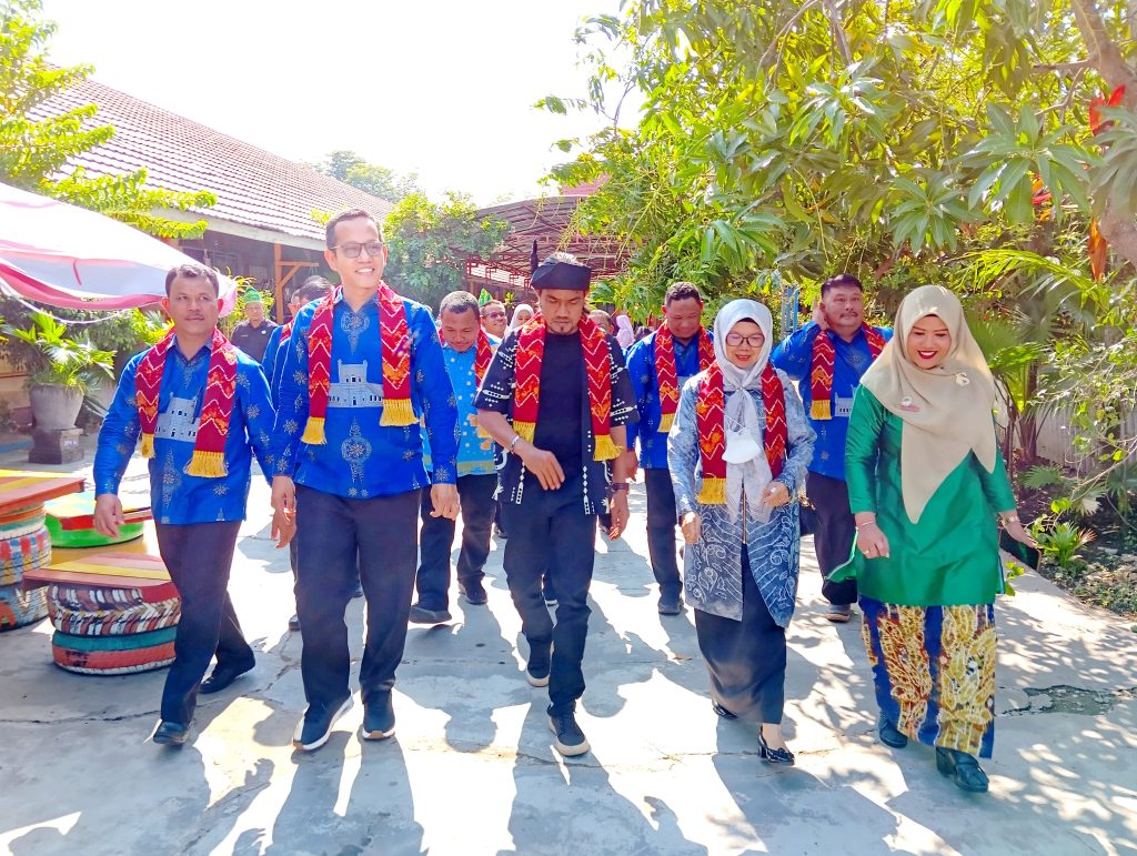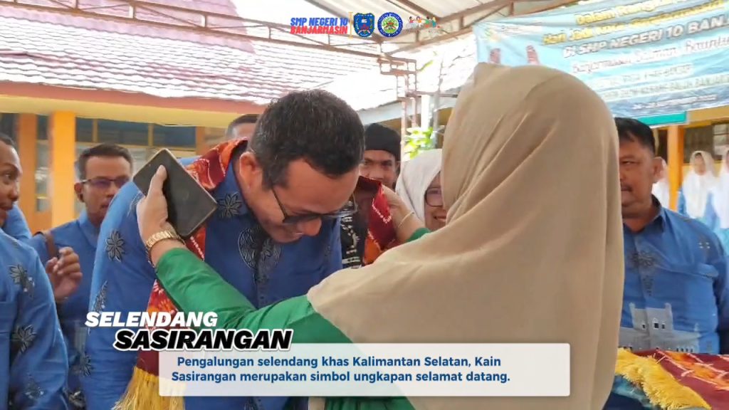 Pengalungan selendang khas Kalimantan Selatan, Kain Sasirangan merupakan simbol ungkapan selamat datang. Pengalungan ini langsung diberikan Ibu Syahrida, M.Pd selaku Kepala Sekolah.