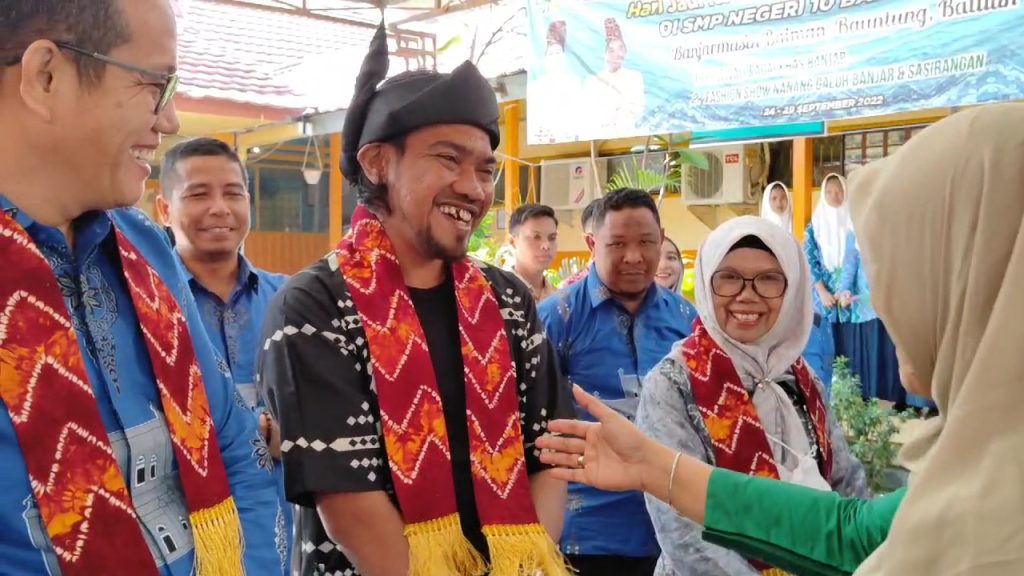 Seluruh warga SMP Negeri 10 Banjarmasin tentu menyambut kedatangan para tamu dengan antusias dan gembira. Salah satunya dengan menghadirkan seni tradisi Banjar Sinoman Hadrah ketika menyambut tamu Rombongan Program Master Class Kongres Ke VI dari Siak Riau.