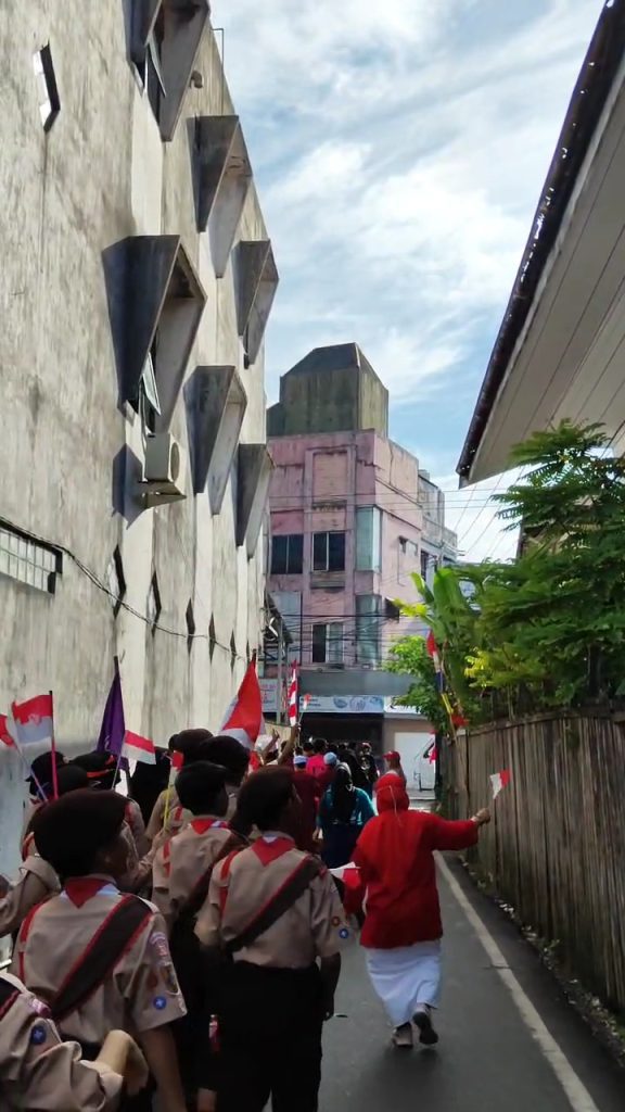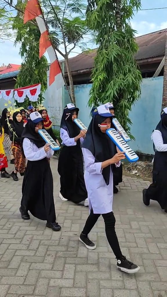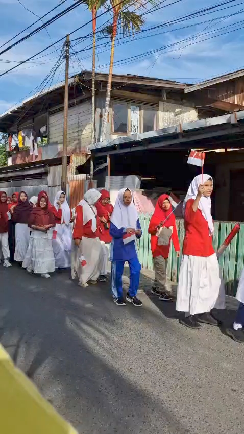 Karnaval ini juga menyedot animo masyarakat untuk menyaksikan kegiatan ini di sepanjang jalur yang akan dilintasi dengan sangat antusias melihat keseruan berbagai ragam penampilan. Ibu Syahrida (Kepala Sekolah) antusias membagikan hiasan bendera kepada warga sekitar.