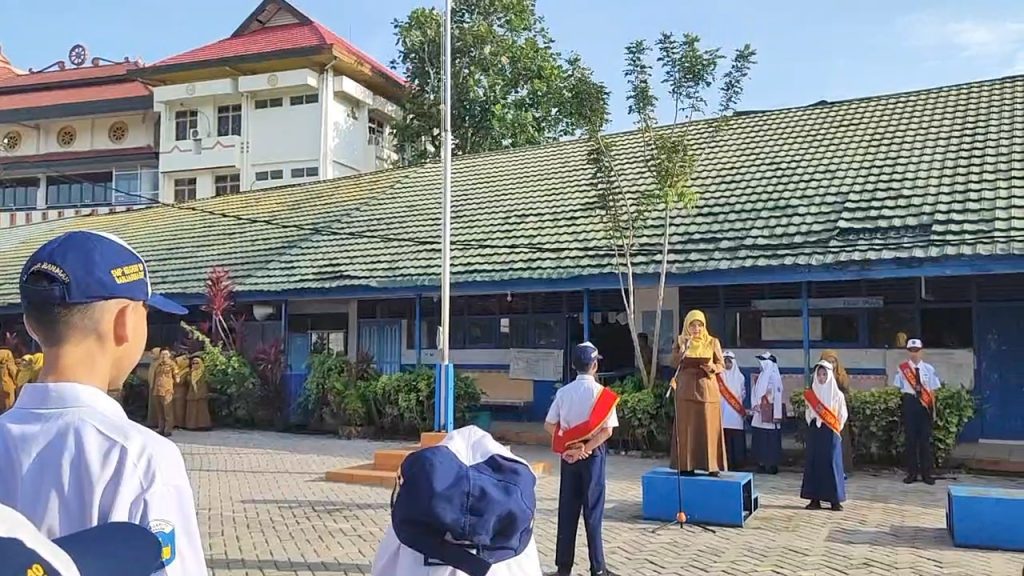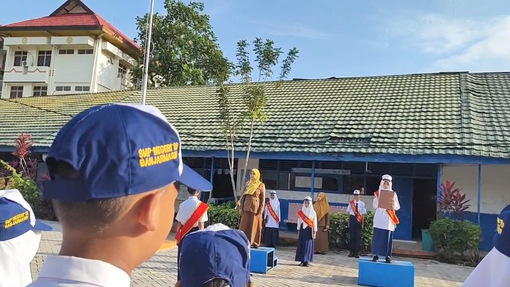 Banjarmasin – Setelah libur Lebaran yang menyenangkan, hari ini halaman SMP Negeri 10 Banjarmasin kembali ramai! Seluruh siswa dan guru berkumpul untuk upacara bendera pertama setelah libur panjang.